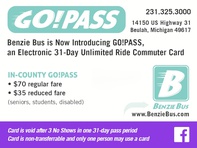 GO!PASS Reduced $35.00 This is a virtual pass that is good for unlimited rides for 31 calendar days. Rider must qualify for reduced fare. This is for In-county rides only. Certain conditions apply.